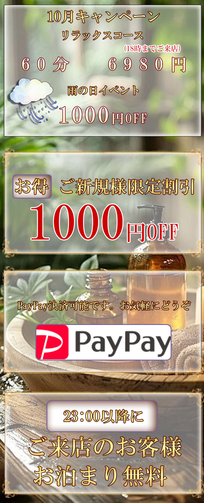 ☘️☘️当店ではリラックスをメインに癒しを堪能できるマッサージのお店でございます。初めての方でも安心してご来店頂けます。心よりお待ちしております。